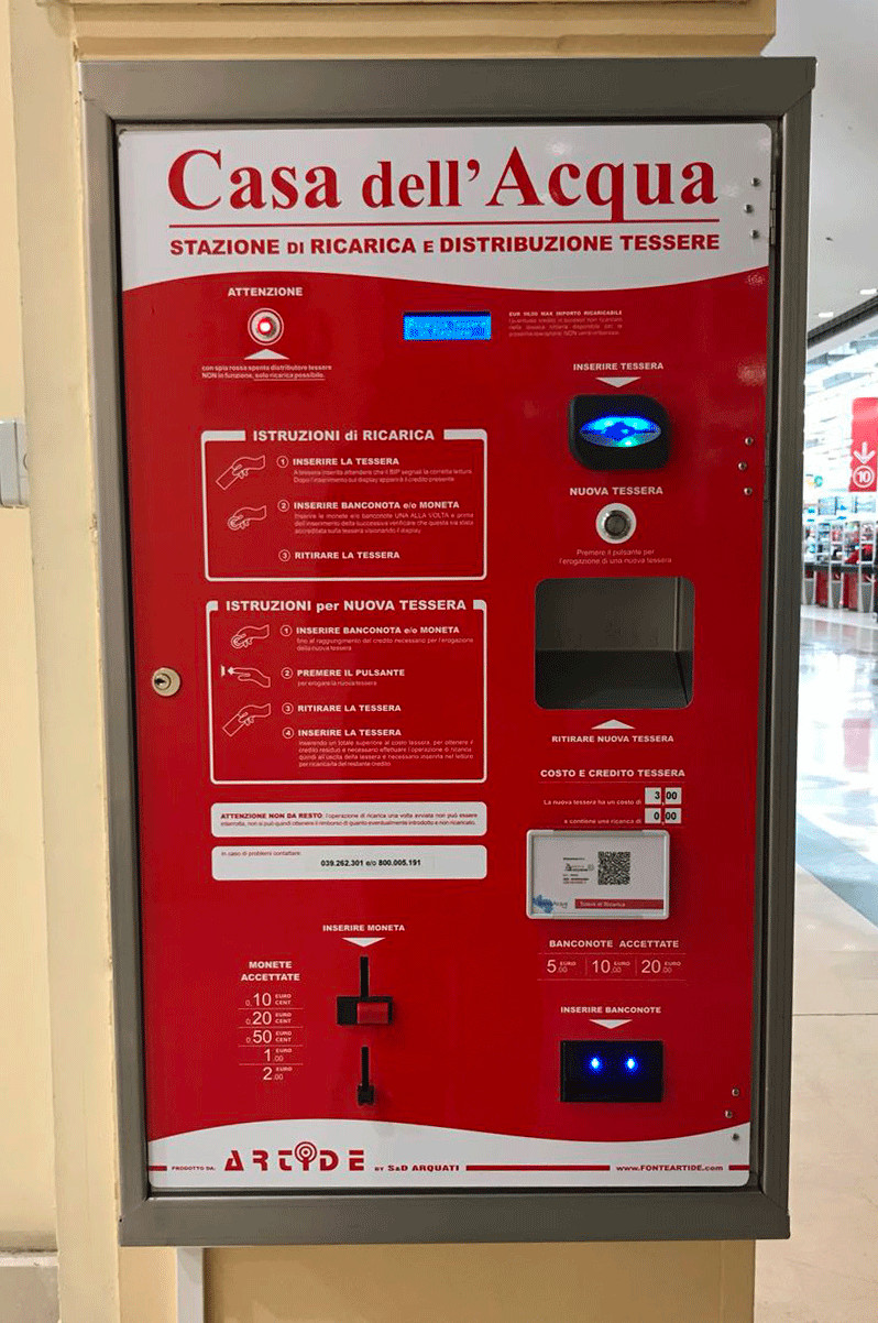 Il distributore non dà resto ed accetta sia banconote da 5 a 20 euro che monete da 10 centesimi a 2 euro. La tessera ha un costo di 3 euro cad.
