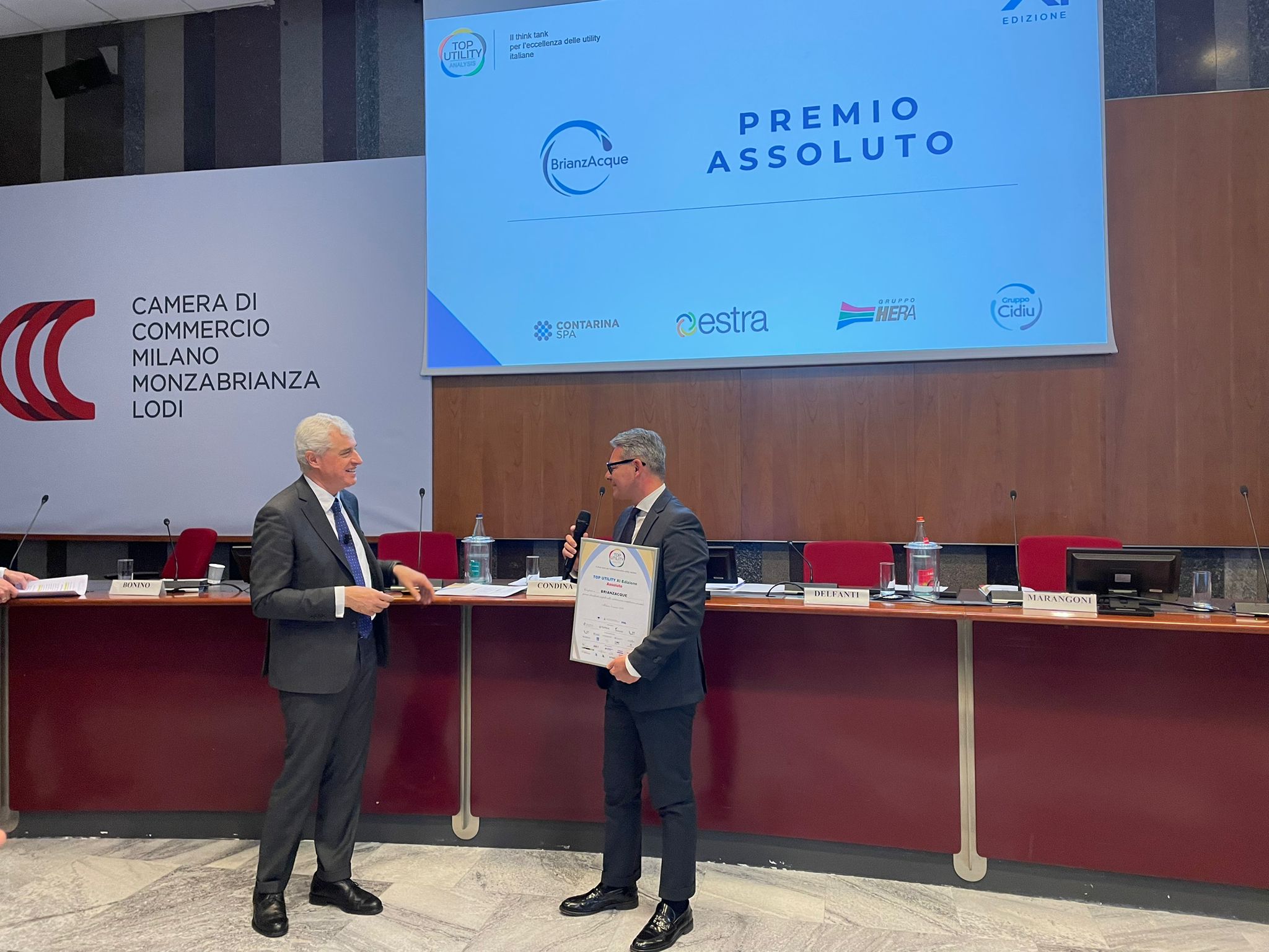 BrianzAcque, gestore unico del servizio idrico integrato a Monza e Brianza, è il vincitore Assoluto del Top Utility Award assegnato alle eccellenze nel settore dei servizi pubblici nazionali. La consegna del premio promosso da Althesys Strategic Consultants è avvenuta questa mattina a Milano in Camera di Commercio nell’ambito del convegno di presentazione dell’ XI° rapporto “Le performance delle utility italiane. Analisi delle 100 maggiori aziende dell’energia, dell’acqua, del gas e dei rifiuti”. BrianzAcque è risultata la miglior utility italiana secondo l’insieme dei parametri economico-finanziari, ambientali, comunicazione, customer care, formazione e ricerca&sviluppo.