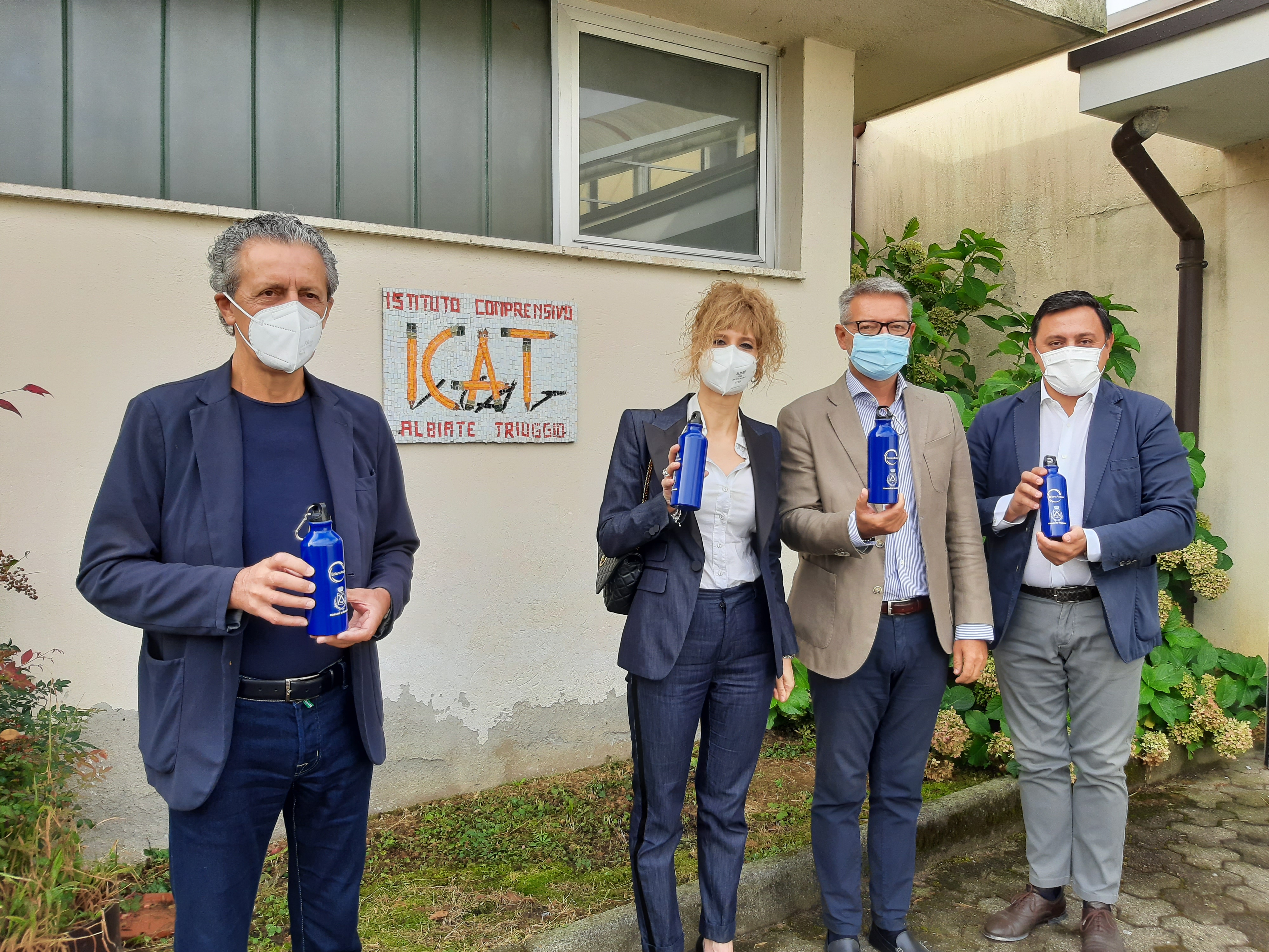 La distribuzione, nel più rigoroso rispetto delle norme anti-Covid, è avvenuta alla presenza di Enrico Boerci, presidente e AD di BrianzAcque, l'azienda pubblica che gestisce il ciclo idrico integrato e del Sindaco del comune brianzolo, Pietro Giovanni Cicardi. Un dono bello e utile, soprattutto in questo periodo di emergenza sanitaria, in cui poter bere dalla propria borraccia personale contribuisce ad aumentare la sicurezza dei ragazzi.
