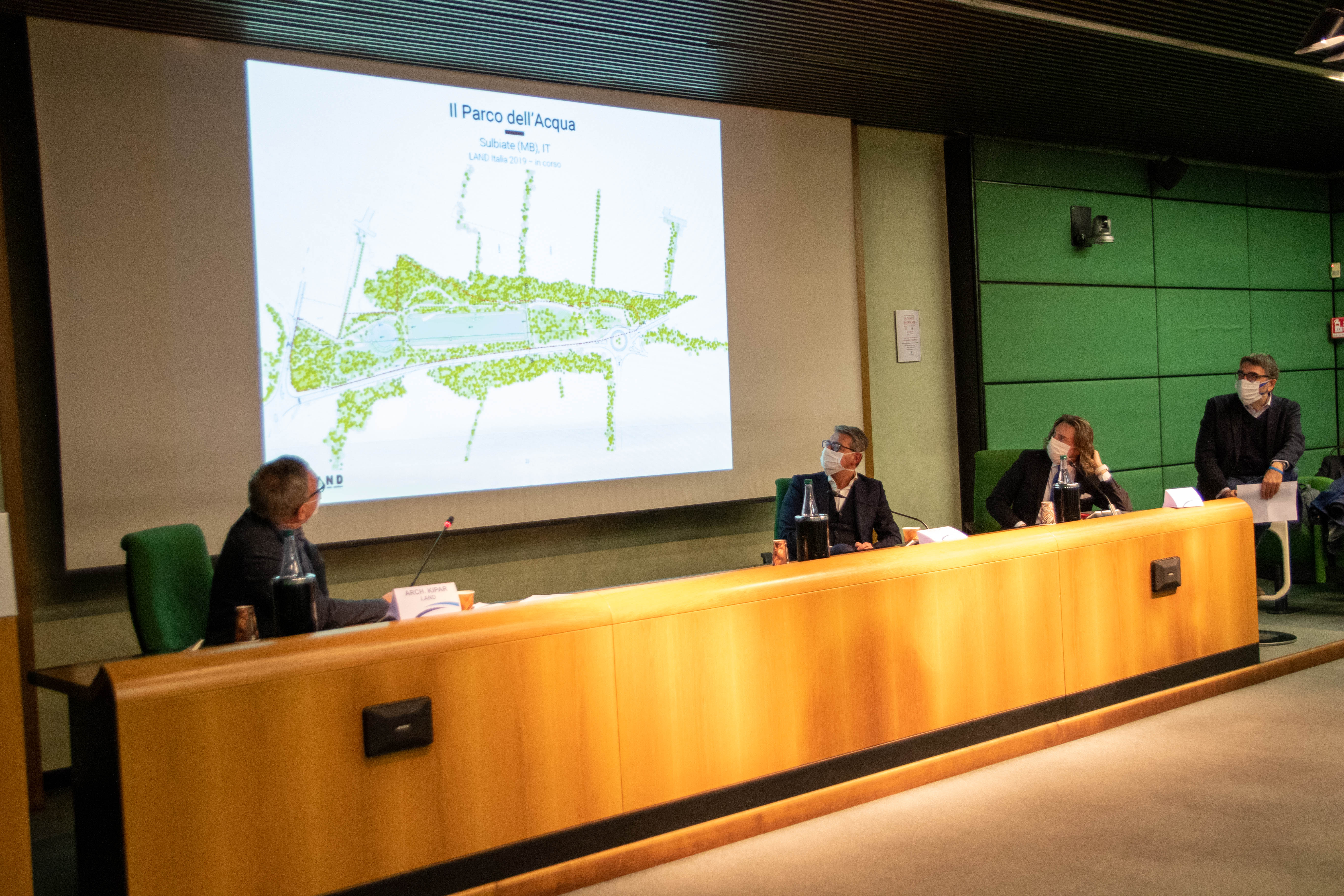 The initiative was presented to the media on Thursday 11 February 2021 in the presence of the main players of this major multifunctional project. The first two projects are co-financed by the Lombardy Region. These are real public "gardens" resulting from the redevelopment of marginal urban areas that not only solve the problems of flooding and overflowing when it rains, but also provide spaces for the community to meet and socialise.