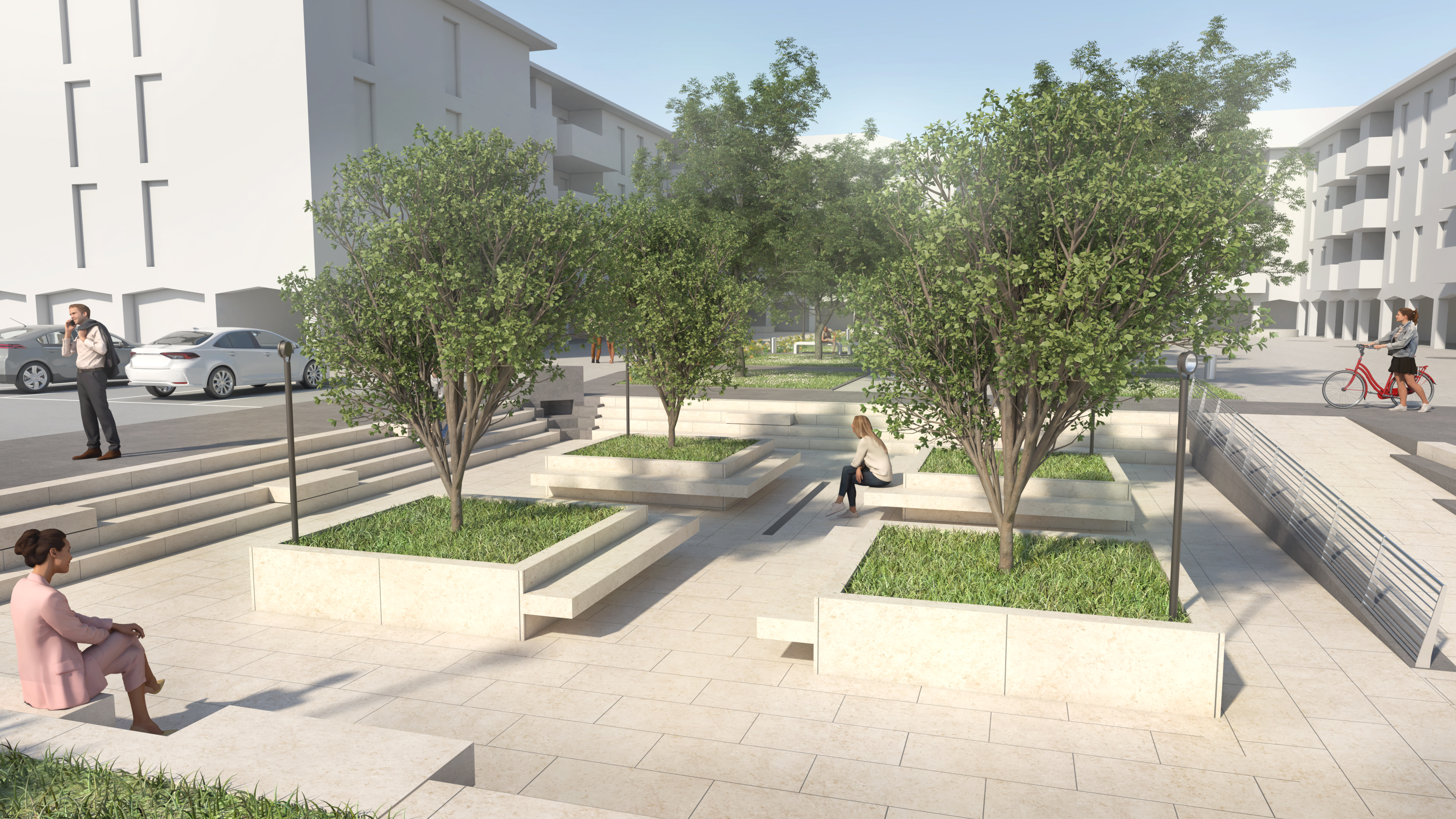 Il progetto, ispirato ai più avanzati modelli europei di water square, rappresenta una delle più innovative soluzioni nature-based applicate alla gestione delle acque meteoriche in ambito urbano. Durante gli eventi di pioggia intensa, una parte della piazza sarà in grado di allagarsi temporaneamente in modo controllato, per poi tornare asciutta in poche ore, evitando così sovraccarichi della rete fognaria. In condizioni normali, lo spazio sarà fruibile come una vera e propria piazza pubblica: verde, vivibile e pensata per la socialità.