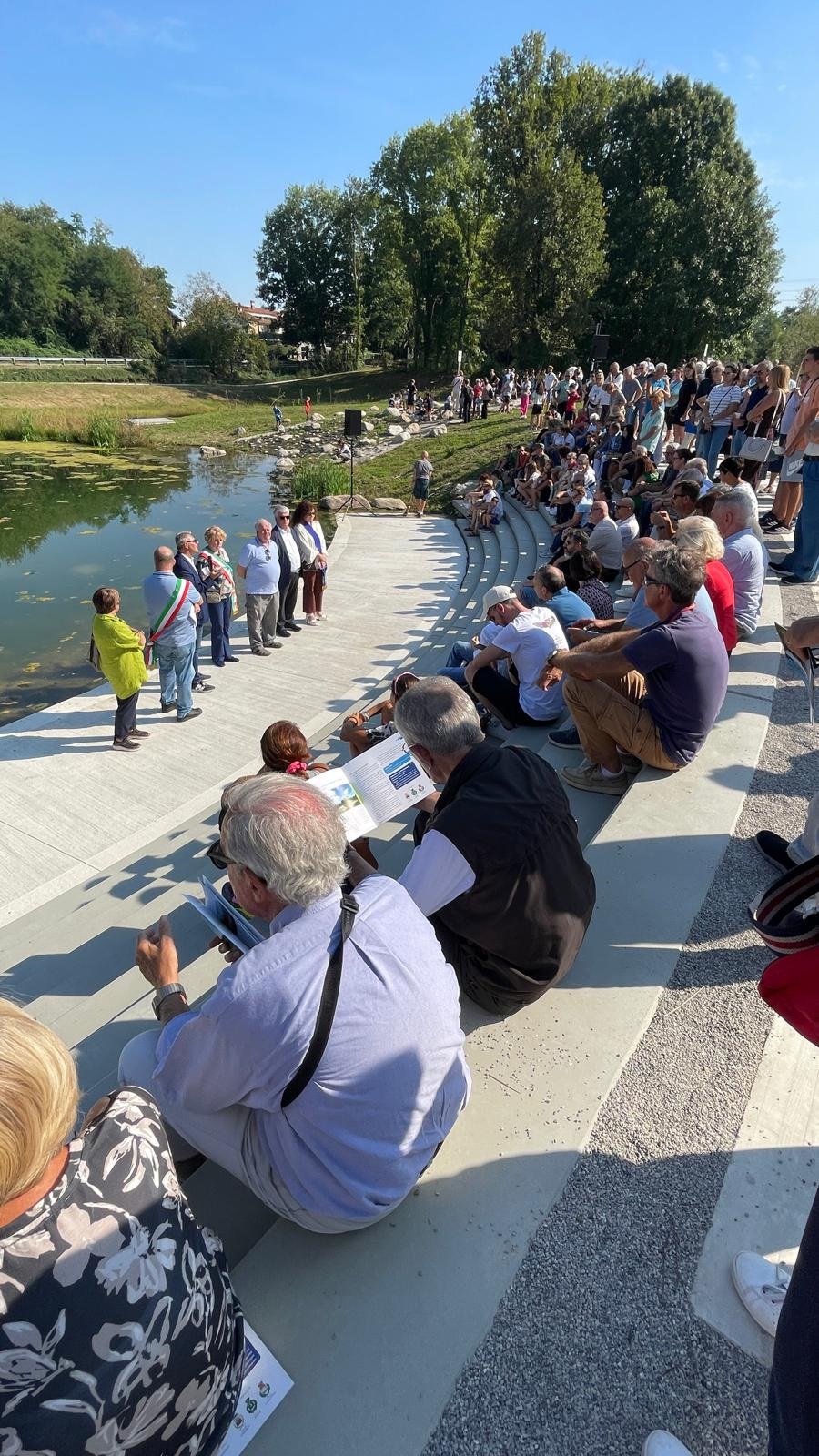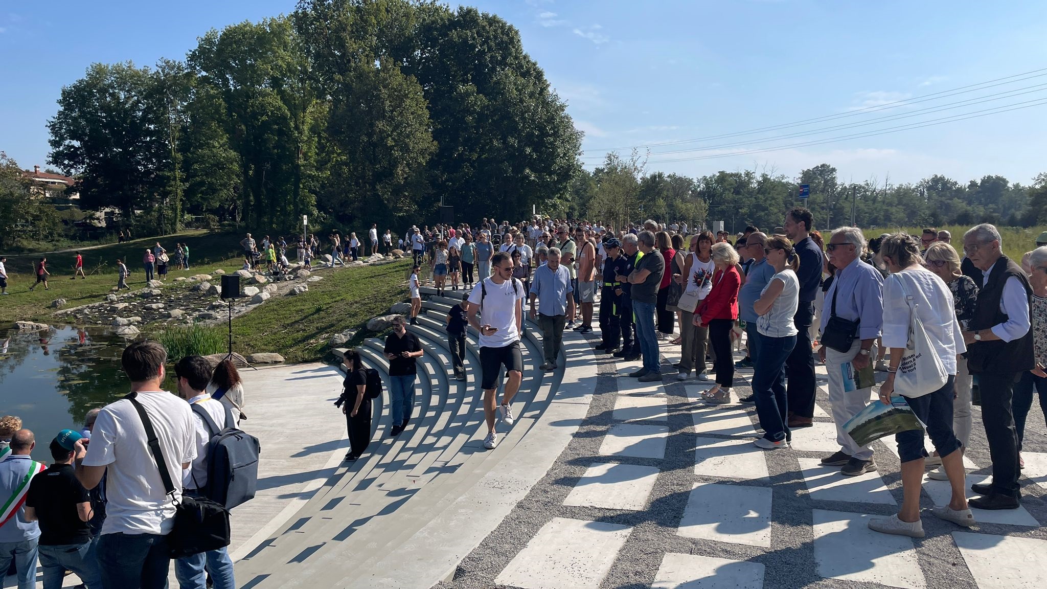 Grande festa, nel pomeriggio di sabato 20 settembre, alla cerimonia ufficiale di apertura del nuovo Parco dell’Acqua di Aicurzio-Sulbiate. Una “infrastruttura blu-verde” estesa per circa 5 ettari, la più grande della Brianza, nata dall’intervento di BrianzAcque, in collaborazione con i Comuni di Aicurzio e Sulbiate. Un’area nelle immediate vicinanze della SP177, delimitata tra le vie Fermi e dei Quadri, caratterizzata da una vasca volano, giochi d’acqua, percorsi ciclopedonali, aree verdi attrezzate, spazi di socialità e sostenibilità ambientale. Questo nuovo Parco dell’Acqua rappresenta un esempio concreto di infrastruttura green multifunzionale, capace di unire finalità ambientali, per mitigare il rischio di allagamenti, educative e ricreative: un’oasi urbana rigenerata e accessibile a tutti.
