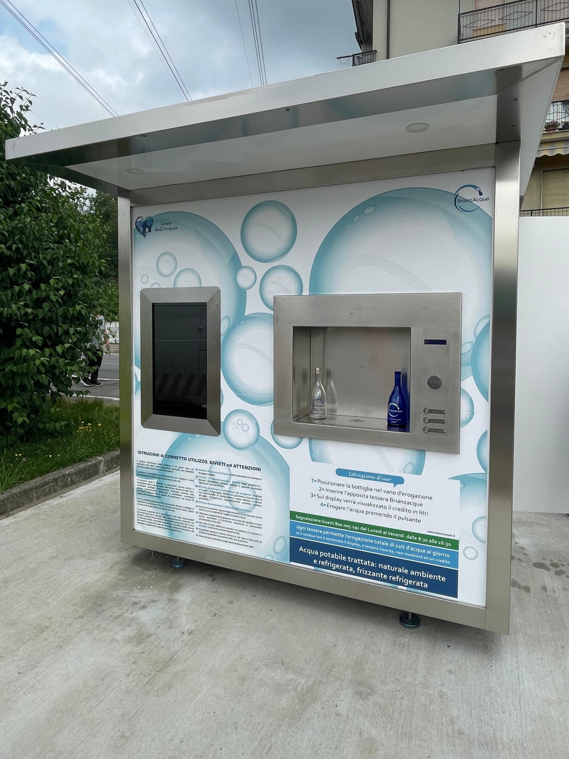 Si tratta del terzo chiosco idrico per il Comune, che si aggiunge a quello già attivo dal 2020 a Baruccana, in Piazza Italia, ed al precedente di Via Alcide De Gasperi angolo Piazza IV Novembre, in funzione dal 2016. La nuova struttura, invece, è stata installata in via degli Abeti, in località Altopiano, ed entra a far parte della rete di 108 casette presenti in tutta la Provincia di Monza e Brianza.