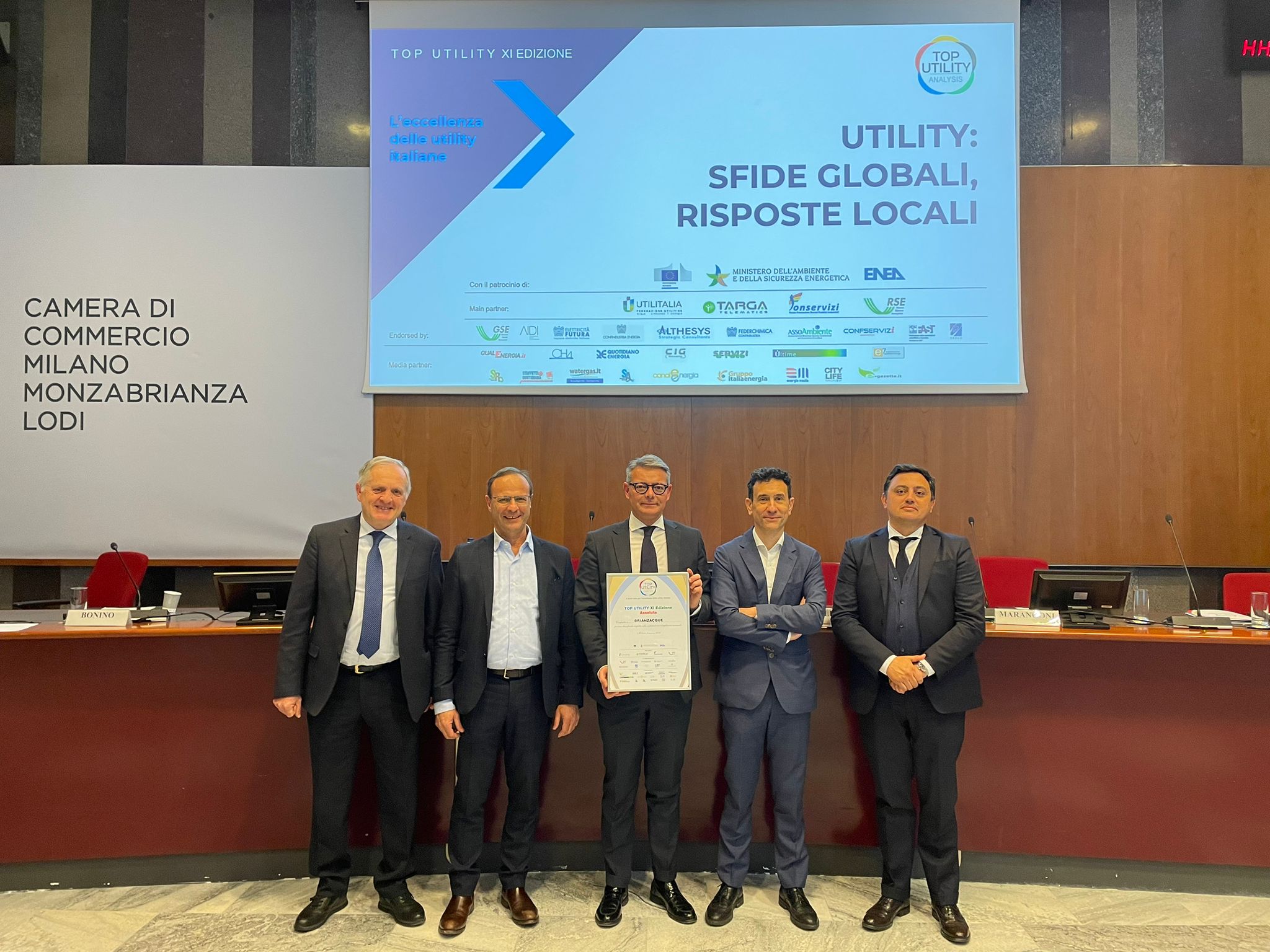 BrianzAcque, gestore unico del servizio idrico integrato a Monza e Brianza, è il vincitore Assoluto del Top Utility Award assegnato alle eccellenze nel settore dei servizi pubblici nazionali. La consegna del premio promosso da Althesys Strategic Consultants è avvenuta questa mattina a Milano in Camera di Commercio nell’ambito del convegno di presentazione dell’ XI° rapporto “Le performance delle utility italiane. Analisi delle 100 maggiori aziende dell’energia, dell’acqua, del gas e dei rifiuti”. BrianzAcque è risultata la miglior utility italiana secondo l’insieme dei parametri economico-finanziari, ambientali, comunicazione, customer care, formazione e ricerca&sviluppo.