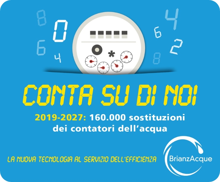 “Conta su di noi” è la campagna di BrianzAcque per la sostituzione dell’intero parco contatori dell’acqua potabile in Brianza. Operazione avviata nell’ultimo quadrimestre del 2019, il maxi intervento si protrarrà per altri 7 anni con un investimento economico iniziale pari a 3,5 milioni di euro per il biennio 2020-2021.