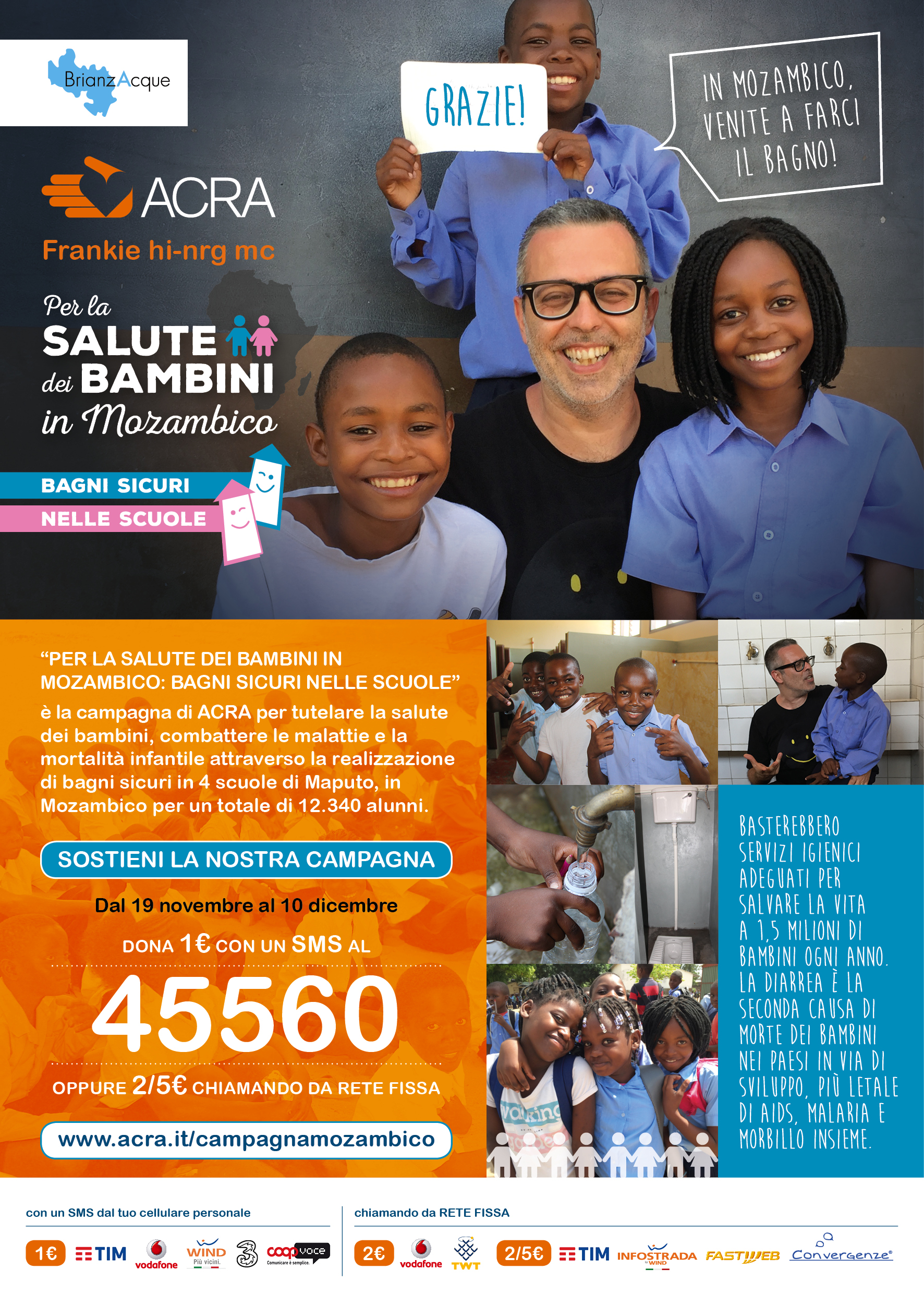 Brianzacque sostiene la campagna ACRA che si pone come finalità la tutela della salute dei bambini in Mozambico al fine di combattere le malattie e la mortalità infantile attraverso la realizzazion